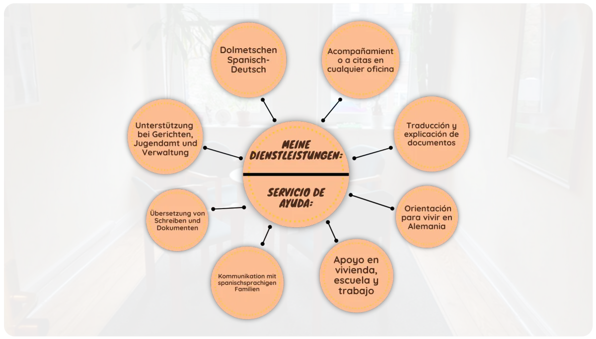 Ich erleichtere die Kommunikation zwischen spanischsprachigen Familien, Mitarbeitenden, Klienten und deutschen Behörden. Ziel ist Klarheit, Entlastung und eine sichere Zusammenarbeit.